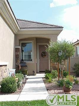 If you love fantastic mountain views this is it! Located in the lovely gated, 55+, Sun City Del Webb Community this upgraded home shows like a model. Featuring a extra spacious rooms with tall ceilings reaching 10 feet tall providing beautiful living space and energy efficient airflow. It's immaculately kept with custom color paint all throughout. The living room has 9 ft. sliding glass doors that paint a perfect view of the mountains from the comfort of your living area. Outside is a covered patio and fully landscaped backyard with no neighbors between your view of the natural landscape. The Kitchen has granite counter tops and backsplash, dark wood cabinets, stylish nook and breakfast bar, large tiled floors and stainless appliances; New dish washer, new microwave. The home also features an alarm system and tankless water heater. The master bath has a walk-in closet, and dual sinks with shower. Separate laundry room has a sink and beautiful cabinets for storage. The Second bedroom is perfect for guest or to be used as an office plus a full bath in the hall. The community offers a fitness center with 3 pools and spa, BBQ, tennis and bocce courts, golf courses. The staff provides lots of programs and activities and trips in case you were looking to branch out and get to know your neighbors more. One look at these tall ceilings and Mountain View and you'll be sold. Check it out while you have the chance, this floor