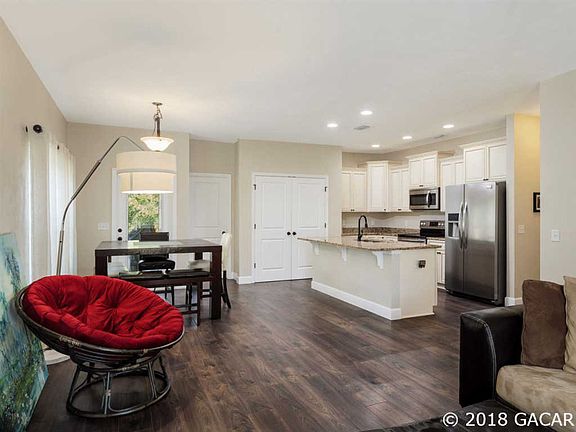 This IMMACULATE 3/2 home, built in 2016, feels like BRAND NEW CONSTRUCTION! Fully upgraded, the Open Concept Kitchen and Family Room areas brighten up with natural light. Home is cozy, yet modern with a Split Floorplan. The crisp Kitchen boasts gorgeous Granite Countertops, with a large Center Island, Soft Close Custom Glaze Cabinets (Wood), Stainless Steel Appliances (Fridgaire), a Lazy Susan, and not limited to. Master Bedroom is spacious, and Master Bathroom equipped with Walk-In Closets, Privacy Toilet, Dual Vanities (Granite), a roomy Walk-In Shower, and separate Garden Tub. Additional features include a Tankless Water Heater, covered Patio (Front & Back), Automatic Irrigation System with a Separate Meter (significantly lower bill), 2-Car Garage, and not limited to. Located just off US-441 (convenient to Alachua and High Springs, but still quiet and private), home is close to the New Publix, I-75, Lowes, the Springs, Restaurants and more. Come preview this true Treasure today!