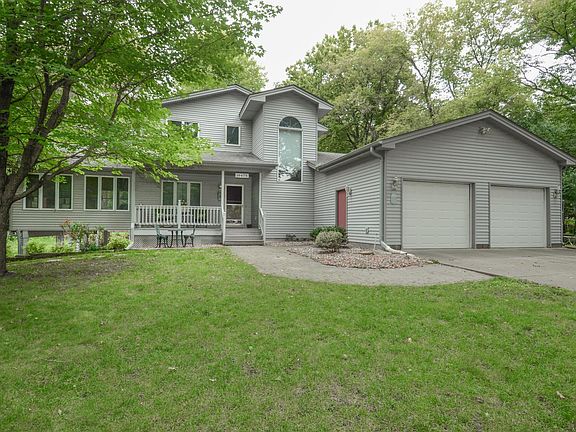 A great location for this exceptional 3 bedroom, 4 bath, 2 story style home as it includes dining, grocery, entertainment, schools, and parks all near by. Privacy stands out as this home sits on a 2.3 acre cul-de-sac lot with a main floor entry that features a kitchen with stainless appliances, separate laundry room area, convenient 1/2 bath, informal dining room and an oversized 4 season porch! Upstairs you will find 3 bedrooms, a full bathroom, and another 3/4 bathroom in the primary bedroom. Downstairs highlights include a large game room/family room, a full walkout to a patio and plenty of storage areas. Outside is full of trees, wildlife, 2 storage sheds, an in-ground sprinkler system, and privacy privacy.
