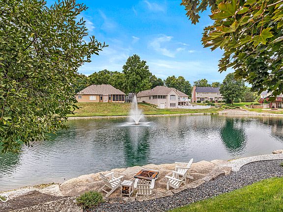 Impressive custom built brick ranch with walk-out basement on the pond. Open floor plan with vaulted & raised ceilings. Hardwood floors throughout. Staggered kitchen cabinets, island, solid surface tops, SS appliances. Primary suite with hardwood floors, updated bath with free standing tub & custom tile shower. Additional 2 bedrooms are generous in size. Sunroom with deck overlooking the pond. Finished walk-out basement has stamped patio with path down to the sitting area by the lake. Prof landscaping & prof maintained yard, oversized front porch w/ stamped concrete sidewalk, irrigation system. Great location. Close to Potters Bridge, golf courses, shopping, etc..