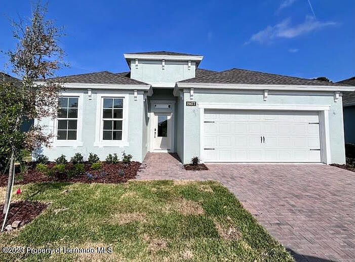 Welcome to the Cascades at Southern Hills, a peaceful gated 55+ community. This Kingsley model is a 2 bedroom, 2 bathroom home PLUS a bonus flex room. It is an open concept floor plan with all the upgrades. The kitchen, great for entertaining, includes a large island with breakfast bar, 42'' soft close cabinets, stone countertops and large pantry. The gas stove top and range is a highlight for the aspiring chef. Ceramic tile in the main living spaces and wet areas. The spacious primary bedroom is equipped with 2 walk-in closets and an en suite bathroom with dual sinks and a water closet. The welcoming living area has large 8 foot sliders that lead out to your covered lanai. Community amenities include a private clubhouse with sparkling pool, fitness center, pickleball courts, bocce ball courts, horseshoe pits, small walking path and meeting area with kitchen. The clubhouse and community are surrounded by nature with opportunity to see a variety of wildlife. All this is tucked away from the hustle and bustle, but minutes from downtown Brooksville, 30 minutes to Pine Island and Weeki Wachee state park and 45 minutes from Tampa international airport. Cable, internet and landscaping maintenance are also included! Call today for your private tour and walk through our model home! MORE PHOTOS COMING SOON!