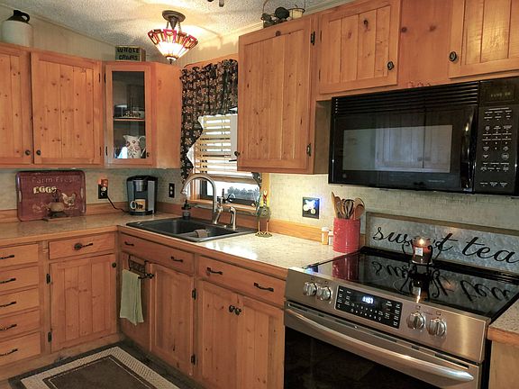 Cozy Cottage Style - 2 Bedroom - 2 Bath - 984 square foot - 1989 - mobile home in the 55+ Community Park of Southway Villa in Brooksville, FL. Monthly fee $250 includes activities and amenities. Absolutely Stunning Craftmanship has been done with this home. Homeowner spared no expense, craftmanship, detail and precision to this home! Country Cottage feel throughout! Homeowner is selling this partially furnished and items remaining will be discussed at closing. One car covered carport with driveway space takes you straight into your Backyard Garden or entry into your Kitchen. Beautiful Wood Cabinets with bronze hardware, stainless/black appliances, tile backsplash, ceiling fan, semi flush stain glass light, tile flooring, black speckle sink with brushed nichel faucet with over looking window. You will enjoy cooking up any meal in this kitchen as you have plenty of countertop/cabinet space! Cupboard Pantry Cabinets. Dining Area is off the kitchen and has a bay window. Table comfortably seats four. Chandelier. Living Room is centrally located with large window and gorgeous floor to ceiling stone fireplace with a slate top hearth and wood mantle. Double Wood Glass Doors opens up to the additional living space. This room has Wall to Wall Windows bringing in ample natural sun light, view of the backyard pond, Ceiling is completely done in Wood with Chandleier Fan and will also take you out to your backyard Garden Patio. Patio is covered, cement slab & wood decking. Privacy Wood Lattice with Gate taking you out back to the pond. Large Barn Style Shed and also an attached Shed under Carport. Attached Shed an A/C Unit, Screen Window looking out, Ceiling Fan and Cabinet Storage Space with a Screen Door. Back inside down the Hall is the Guest Bathroom which also houses your washer/dryer. Lighted and upper shelving. Guest Bath has a shower/tub combo with window, over the toilet cabinet, vanity/sink and tile flooring. Across the Hall is the Guest Bedroom. Perfectly Sized with large window, ceiling fan, and Wood Closet Doors. Main Bedroom is very spacious with En-suite Bathroom. King Size Bed. En-Suite Bathroom has custom wood Linen cupboards, step in shower, vanity/sink and small window. Main Bedroom has a deep lighted walk in custom built closet! So many details you must see this home in person! Neutral Paint. Stain Glass Light Fixtures. Ceiling Chandelier Fans, Wainscoating panels in several rooms. Solid Core Doors. Tile and Laminate Wood Flooring. Small Pet Door. Window Blinds and Treatments. Gutters. New Ductwork. Water Heater is oversized and a year old. A/C was serviced last year and in good working condition. Screen Doors. Stone Skirting. Shutters and Landscaped. About the Park: Southway Villa is an over 55 community of about 275 manufactured homes in a quiet wooded rural environment with deer, wild turkeys and other wildlife seen frequently in the park. Yet it is located within the city limits of Brooksville with complete city services such as water, sewer, trash pick-up, police, fire and emergency services. Park is within walking distance of major grocery stores, national chains such as Wal-Mart and Lowes, banking, restaurants, fast food and other services. Brooksville Regional Medical Center is less than five minutes (3 miles) away by car. Clubhouse has On-Site Management. Shuffleboard Area. Small Pets are Allowed and must be approved by the park.