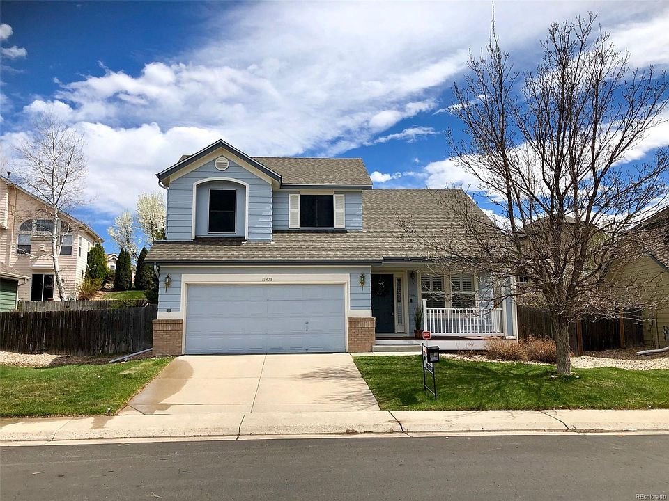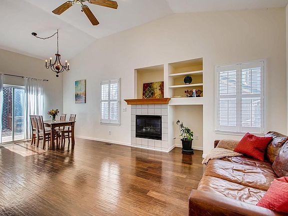 Lives like a ranch. The main floor has wood laminate flooring and vaulted ceilings. The great room has a gas fireplace and built-in shelves, the eating area has a slider that leads to the back deck. The kitchen has a nice stainless steel refrigerator, white painted cabinets, a butcher block counter, lots of natural light, tile flooring. Main floor vaulted master with walk-in closet, wood laminate flooring, and vaulted ceiling, The main floor master makes it live like a ranch floorplan! Main floor laundry with washer and dryer included. Upstairs there are 2 additional bedrooms with mountain views, new carpet and a full bathroom with tile flooring. Newer carpet and windows, Nest thermostat. Fenced back yard with a large deck, sprinkler system, new sod. Great Stroh Ranch location with community rec center with indoor and outdoor pools, fitness facility, tennis, racquetball and basketball courts, close to Cherry Creek Trail. Easy access to Parker Road or Hess Road to I-25.