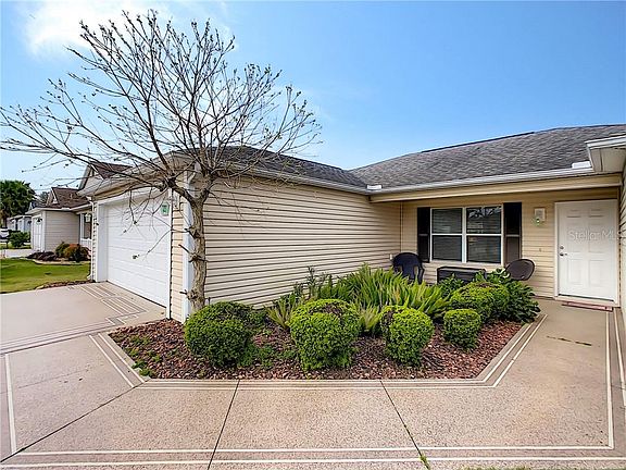 GREAT LOCATION! Sunkissed Model in Village of Buttonwood. Highly desired area that is centrally located in The Villages. Easy golf cart ride to Lake Sumter Landing or Brownwood Paddock Square for dining, shopping and entertainment. Just down the road from Redfish Run and Tarpon Boil Executive Golf courses and Fishhawk Rec. Center. Enjoy The Villages lifestyle in this TURNKEY home that is tastefully decorated. Painted driveway, garage floor and lanai. Split floor plan. Master bedroom with en-suite bath with double sinks. Large walk in closet. Other side of home has two bedrooms and bath with pocket door for complete privacy for your guests. Open floor plan with kitchen open to living area. Laminate flooring throughout living room, dining room and kitchen. Screened lanai has roll down shades for privacy and has attached birdcage. Why wait when you can be living The Villages dream now?