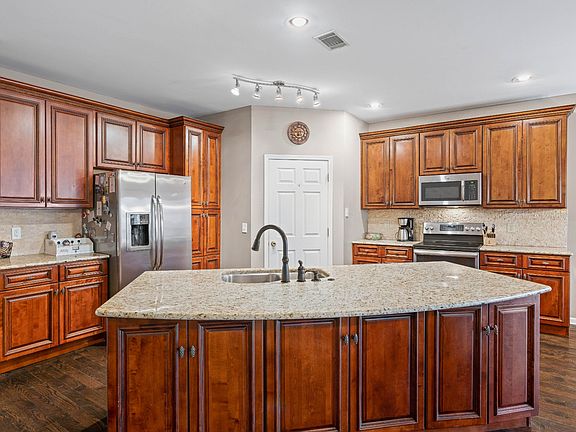 Come see this charming home in a neighborhood with lighted sidewalks and neighborhood trails to the lake. The home has wonderful upgraded finishes & an open floor plan. Primary bath has a tiled steam shower and marble countertops. Secondary bath has a tiled surround shower/tub combo and a dual vanity sink. New roof installed 2016 / HVAC unit replaced 2018/insulated garage door added 2022/ kitchen remodel features new dishwasher, a large island with storage on both sides & upgraded cabinets & granite countertops. Sand and finish hardwood in main living areas downstairs & kitchen. Whole house water filtration system. Amazingly huge deck w/ retractable Sunsetter awning w/ dimmable led lights & remote control will make outdoor living fun! Privacy fenced yard w/ 2 gates. Great attic storage.
