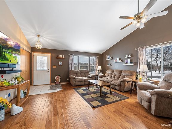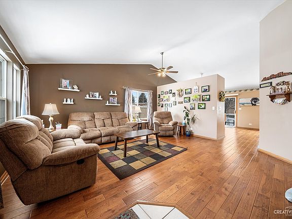 #Oswegoschools. Move right into this beautiful ranch home across from a park and close to amenities. Beautiful vaulted ceilings in the living room and kitchen give it an airy feel. Beautiful hand scraped hardwoods in the main living areas and master give the home a warm, inviting feel. The bedrooms have been freshly painted as well. A fully finished basement with a full bath gives you even more room! So much has been done, just move right in: New basement windows in 2021, new HVAC in 2019, sump and battery back up in 2020, all new appliances in Nov. 2021 and new pool and fence in May 2021. Hurry to get into this home, it won't last long!!