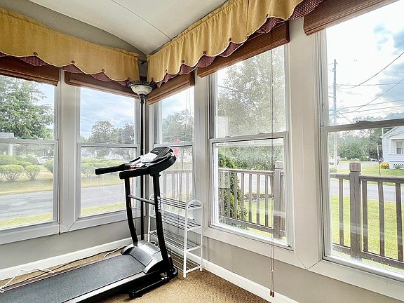 This adorable homes sits on a double cornered lot which is fenced and perfect for entertaining with friends and family. Home offers a lovely 3 season front sunroom, cozy living and dining room with wood vinyl floors, large eat in kitchen with loads of cabinets, counterspace and large pantry area. There is also a mud room leading to the spacious backyard deck. The vinyl siding, vinyl windows, heating system and CA are newer and updated in 2015. This home also offers low taxes and convenient location.