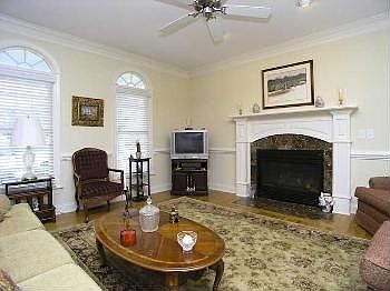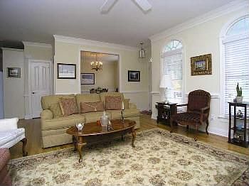 Lovely Charleston style home located on a quiet street in the Bedford Community. The first floor has beautiful hardwood flooring throughout except in the master suite. The living room features a cozy marble surround fireplace. The dining room has chair rail, wainscoting and crown molding. The open kitchen has gorgeous French white cabinets, granite countertops, stainless steel appliance, tile backsplash and breakfast bar. The adjoining breakfast room has access to the screened porch. The grande first floor master suite has a trey ceiling, huge walk in closet and tile bath with whirlpool tub, separate shower and double bowl vanity. Upstairs are three additional bedroom and a bonus room with access to the veranda. The garage is attached to the house and has large driveway big enough to park six cars. Call today to see this great home in the walkable community of Bedford.