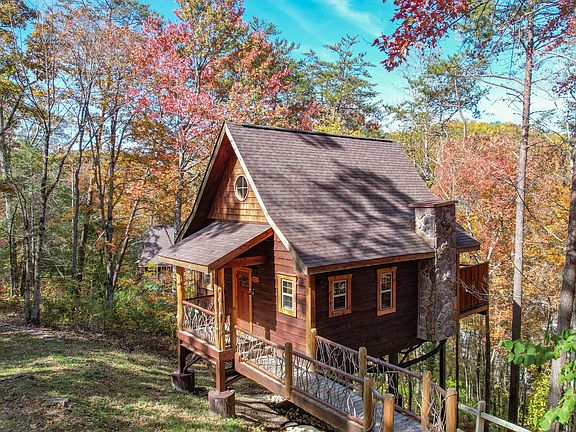 Charming and unique treehouse cabin perfect for a couples retreat or family getaway! It's not every day such a unique opportunity becomes available. This property has excellent rental history of $80k in gross revenue for 2023! Inside is a king bed, sleeper sofa, and upstairs loft full bed with air hockey! Outside on the back deck is a hot tub perfect for relaxation. This could easily be transformed into a couples oasis by adding an infrared sauna, robes, massage chair and potentially even change the loft to a couples theater space. Great opportunity to get creative! In a very competitive short term rental market you know you will always be able to stand out in the crowd with such a unique property! 1922 and 1930 Kinfolks Ridge Way are also available if interested in a treehouse portfolio!
