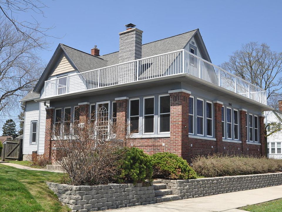 You will feel like you are on vacation year round with this home overlooking Racine's North Beach. Enjoy views of the downtown harbor & Wind Point Lighthouse from the enclosed wrap around porch featuring a natural fireplace. This home offers lots of old world charm with hardwood floors & natural woodwork. Main level offers a parlor w/FP, living room, formal dining w/beautiful BI china w/leaded glass, kitchen w/walk in pantry, 1/2 bath, bedroom. Upper level has 3 bedrooms, full bath, office area that could be heated. Large fenced yard. Some newer windows. Walk to the zoo and beach