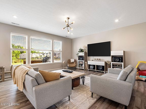 Don't miss your chance to see this stunning 4 bedroom, 2.5 bath home nestled in the Bridle Run neighborhood! This home boasts a 2 car attached garage with built in shelving and a spacious open floor plan that is perfect for entertaining. When you enter the home you will notice the convenient home office right off the foyer offering French doors that allow for plenty of natural light. The living area, dining area, and kitchen are all open to one another and feature decorative designer light fixtures. You will love the flooring that offers an acoustic pad and is also waterproof and pet proof. In the kitchen you will find an oversized island and sink as well as GE Profile stainless steel appliances. The dining area is lined with a wall of windows that look out to the fenced in back yard. Make your way upstairs where you will find a convenient sitting area outside of the bedrooms, perfect for reading or relaxing. The primary bedroom is truly a retreat offering a convenient en suite bathroom with a double sink vanity and extra large soaking tub as well as a glass shower with a bench seat. You will love the spacious walk-in closet that allows ample storage space for clothing and accessories. There are 3 additional bedrooms and a second full bathroom with a convenient shower/tub combo. All of the bedrooms have matching Hunter Symphony premium fans with WiFi capability for added comfort. You will enjoy the patio within the fenced in back yard that boasts attractive black aluminum fencing installed in 2023. The yard has a border of arborvitae and azaleas that will mature into a natural perimeter providing added privacy. The garage door is a smart door that can be operated by an app for easy entry. Make sure you get a chance to see this amazing home while it is still available - schedule a private tour today!