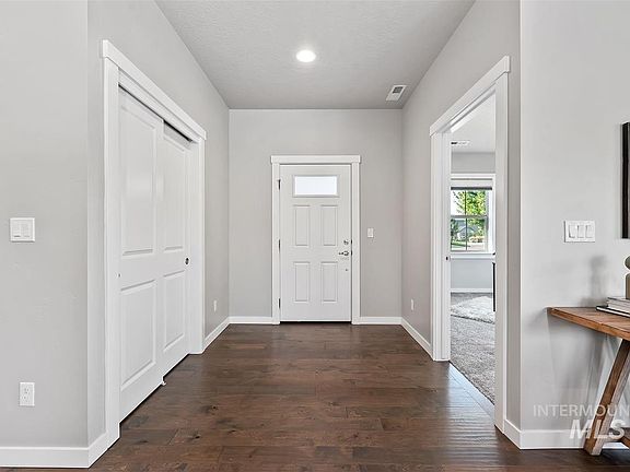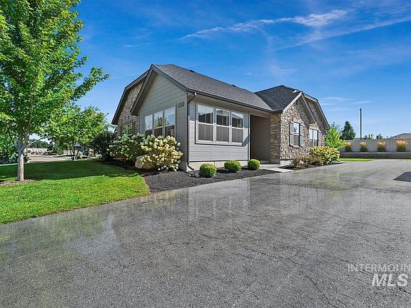 Welcome home to Movado Village, one of Meridian Idaho's finest gated communities! Enjoy exceptional quality coupled with the HOA provided exterior maintenance and the additional security of living in a private community. Meticulously maintained, this beautiful single level home is the largest floorplan offered (includes dedicated office) and is a unique opportunity to own a stand alone (not townhouse) in the Village. Along with all of the fine finishes one would expect, this home also includes custom blinds, a Kinetico water filtration/softener system and epoxy garage floor. Large windows fill the office, great room and kitchen with natural light and the wide doors and walkways make this home feel comfortable and open. The walk-in prep pantry adds functionality and storage to the already abundant kitchen cabinetry while the oversized enclosed patio is perfect for entertaining. Residents of Movado Village enjoy use of the "Social House" including fitness center, catering kitchen, gathering space and pool.