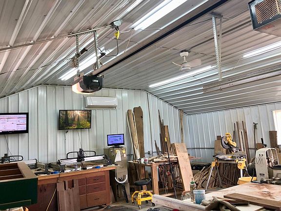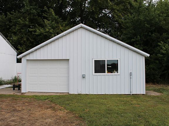 The exterior is just as impressive with two heated garages—one attached and one detached—plus a grain bin and large 26x60 pole building for additional storage or workspace. The detached garage has been fully renovated in 2023-2024 with new metal siding, roof, and interior walls, concrete flooring, insulation, windows, wiring, and a dual mini-split heat and AC system, making it an ideal year-round workshop. The property is half wooded, giving you the perfect balance of open space and natural privacy.