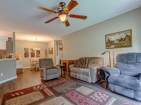 Don't miss this true NO STEPS 1 floor Ranch Condo in desirable Tanners Cove in Hebron! This Condo boasts 3 Bedrooms & 2-Full Baths. Open floorplan w/9ft ceilings, in-unit laundry, large living room w/walkout to the private patio, large primary bedroom & bathroom w/walk-in closet. Modern kitchen w/ Stainless Appliances & new corian countertops. Luxury Vinyl Plank & newer carpet throughout, freshly painted, & new corian vanity tops. Condo has attached oversized 1 car garage and an option to rent a second detached 1-car garage across the street. Condo is USDA Zoned.