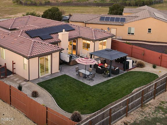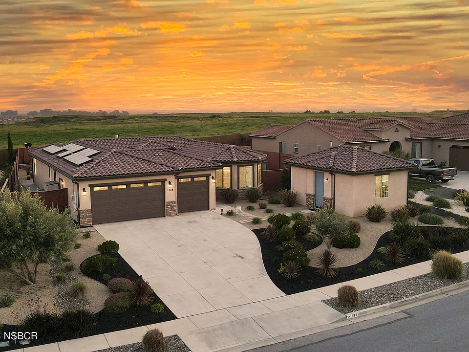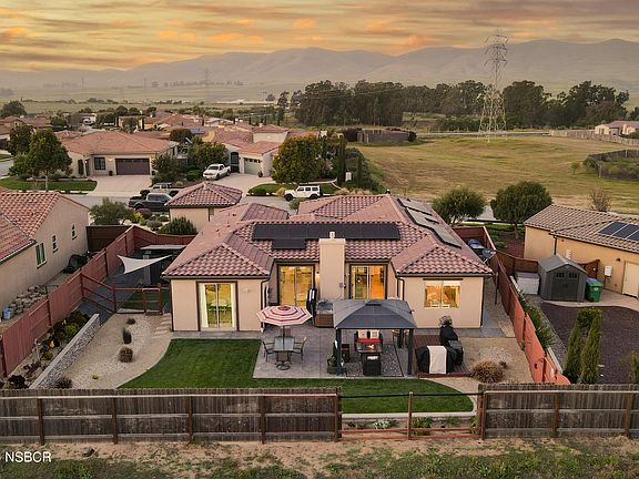 Beautiful Costa Pacifica Estates home is located on a premium perimeter lot just off the bluffs, and boasts gorgeous sunsets, city lights and valley views right out your backyard. Enter the home with private courtyard and walk into the great room with vaulted ceilings, recessed lighting, cozy fireplace and warm colors throughout. The kitchen features a large center island, granite counters, updated appliances, pantry and a nice view of the backyard. All three bedrooms in the main home are separate and on opposite ends of the home. The master suite features vaulted ceiling, walk-in closet, separate tub and shower, dual sinks and direct access to the backyard. The laundry room has lots of storage, large rinsing sink and access to the 3-car garage. The Casita is beautifully decorated and fully furnished with walk-in closet, full bath and is currently rented to a traveling nurse @ $ 1.650 per month. The entire property is nicely landscaped, but the backyard is an absolute haven with spa, covered patio area, deck/bbq area, lush landscaping and back gates that slide open for beautiful views! The views include a 4th of July city lights and fireworks show that does not disappoint. The backyard also includes a firepit, gated dog run and tool shed. This home is perfect for entertaining Family and Friends! Located just minutes to local beaches, hiking/biking trails, golf, local wineries and fine steak houses. Easy commute to San Luis Obispo and Vandenberg Space Force Base.