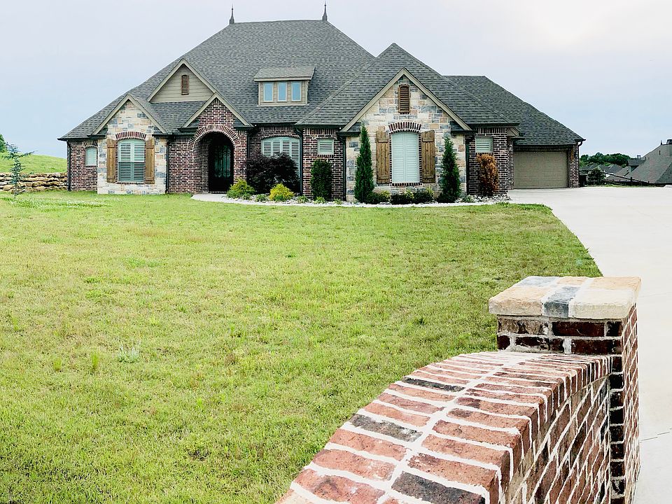 Pristine home located in the beautiful Pecan Ridge Estates. This custom beauty sits on a large lot at the end of a cul de sac and offers many upgrades including hand scraped hardwoods, gorgeous ceiling beams, soft close knotty alder cabinets, custom plantation shutters, theater room with surround sound, a tornado shelter, an artificially turfed dog run with air panel drainage system, extra wide drive way and extended back patio, and so much more. 4th bedroom makes perfect office or play room.