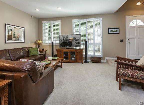Gorgeous Pacific Ranch home located across from a quiet greenbelt & ideal interior location. Enter into this stunning Amalfi model home through the sun drenched patio. Beautiful home has open living room w/cozy fireplace & custom mantle. Gorgeous kitchen has rich granite countertops w/mother of pearl & plenty of cabinets w/brushed nickel hardware & newer stainless steel appliances & gas cooktop with hood. Dining room off kitchen has sliding glass doors leading out to the covered patio perfect for entertaining or relaxing. Unique floor plan boasts 3 master bedrooms each with full bathrooms attached. Second floor has spacious master suite w/a remodeled master bathroom w/separate tub & tile surround shower w/glass door. Master bathroom also has an oversized vanity with his and her sinks & walk in closet. Second floor also has a secondary master bedroom w/reach in closet & vaulted ceiling with upgraded full bath attached. Lower level has large bedroom w/walk in closet & upgraded full bathroom. Numerous home amenities include recessed lighting, new carpet, fresh paint, plantation shutters and dual pane windows. Home is located in the highly desired community w/lush green belts, 3 sparkling pools, club house & close to restaurants, shopping & the beach.
