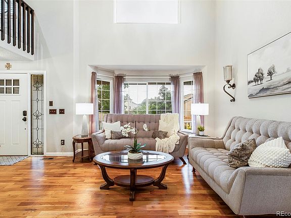 Welcome to Fox Hill located in the coveted Cherry Creek School District! This home features a large lot for perfect summer nights outside, beautiful interior upgrades throughout, gorgeous mountain views and paid off solar panels! As you step inside, you'll be welcomed into one of the two living spaces and its vaulted ceilings, offering a spacious layout. The formal dining room is just off the kitchen - perfect for your first dinner party at home! This eat-in kitchen includes newer stainless steel appliances, beautiful quartz countertops and updated cabinets. After a long day, head down to your second living area - the best, oversized family room providing relaxation and entertaining for all. The upstairs features a primary bedroom with an on-suite bathroom and walk-in closet, two auxiliary bedrooms and a large loft with stunning mountain views! The primary suite is beautifully updated with a gorgeous soaking tub, spacious shower and custom Elfa closet organizers to maximize your wardrobe space. Enjoy extra flex space in the finished basement which can be utilized for your new home gym, office, or an additional recreation area. With plenty of storage and closet space throughout, you'll also enjoy a 4th bedroom and bathroom with beautiful upgrades. Outside, the large lot is complete with a covered patio, firepit, entertainment area, playset and shed! Enjoy al fresco dining and outdoor gatherings year round. Just minutes away from Two22 Brew, VASA Fitness, and Grandview Dog Park ensures convenience and an active lifestyle. Enjoy proximity to Quincy Reservoir, coffee shops, restaurants, plus retail essentials like King Soopers, Walmart, Target, and Lowes. Don't miss this rare opportunity to own a home with unparalleled amenities in Fox Hill!