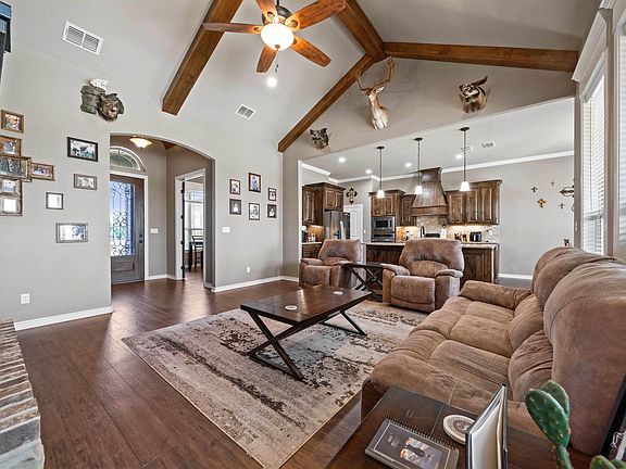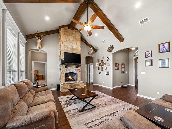 Welcome to your dream home in Lindale Independent School District! This stunning 4-bedroom, 3-bathroom residence blends luxury and comfort in every corner. Step inside to discover a grand living space highlighted by a gas log floor-to-ceiling fireplace, perfect for cozy evenings. The chef's kitchen is a true masterpiece, featuring custom cabinets that offer both elegance and ample storage with a gas cooktop. The master bedroom is a serene retreat, meticulously designed with attention to every detail, ensuring relaxation and tranquility. Master bath boast double vanity, tiled shower and separate tube. Outside, the backyard transforms into your personal oasis, complete with a sparkling pool that invites you to unwind and entertain in style with your outdoor wood burning fireplace. This exceptional home offers both sophistication and convenience, making it the ideal setting for creating lasting memories. Experience the perfect blend of luxury and comfort.