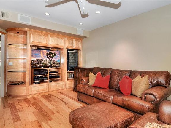 This stunning 2 bed, 2.5 bath home located in the Seacliff on the Green gated community, is resort style living at its finest! A relaxing patio entrance with beautiful pavers overlooks a tranquil waterfall as you walk into your new home! The living room includes custom recessed lighting for art or pictures on the wall. The spectacular kitchen is fully upgraded with granite counters, custom cabinets that include rollout shelving, a walk in pantry, name brand appliances like Amana & Jenn-Air, and plenty of storage! A cozy family room off the kitchen includes a custom entertainment center and access to a second patio. Upstairs includes a loft area with access to a balcony, a guest room with vaulted ceilings, custom closets, an upgraded guest bathroom with a tile shower, and a laundry area. The master bedroom also includes vaulted ceilings, access to a balcony overlooking the waterfall, two walk in closets with custom shelving, a spacious master bath with dual sinks, a sunken Jacuzzi tub and an extra-large tile shower. This home also features gorgeous wood flooring throughout, recessed lighting, double paned windows, a skylight, direct access to the garage, air conditioning, water softener plantation shutters and a central home vacuum system!