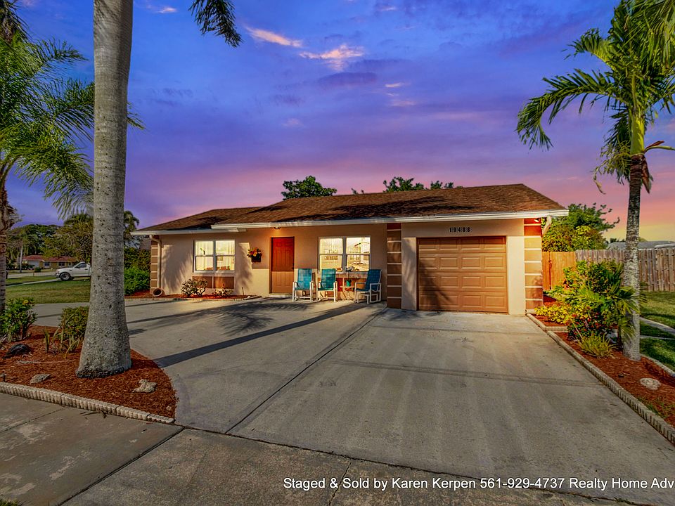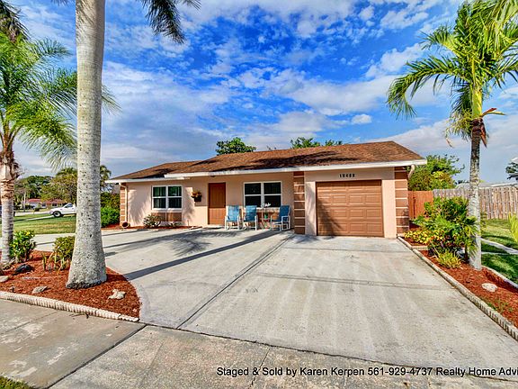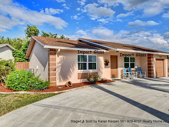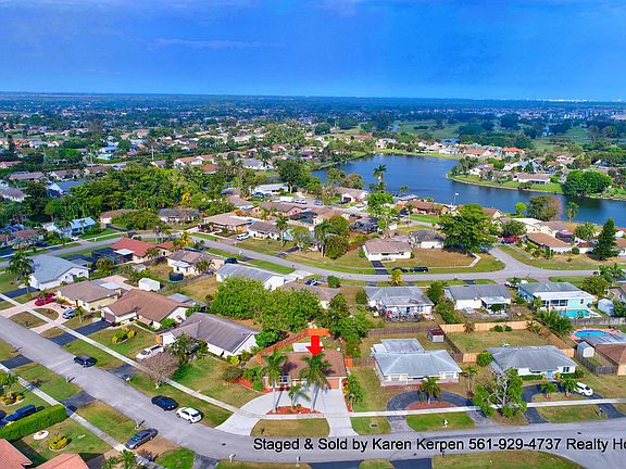 Open, clean & bright. 3 Bedroom or 2 bedroom plus a den/2 bath/one car garage, sunny kitchen with tons of cabinets, newer appliances, tile in the living area, laminate flooring in the bedrooms. Large, private fenced in backyard. Great curb appeal with the beautiful landscaping, large circular & straight driveway. Most windows are impact glass(shutters for ones not impact), Newer Roof from 2006 & new flat roof. A/C with high seer replaced in 2015. American Homes AKA Southwind Lakes is an amazing community of beautiful homes with an extremely low HOA fee $57/month includes community pool, tennis, basketball, tot lot+ more! Amazing schools! Pet friendly community/all ages/Fha/VA financing ok! SOLD BY REALTOR KAREN KERPEN W/REALTY HOME ADVISORS 561-929-4737