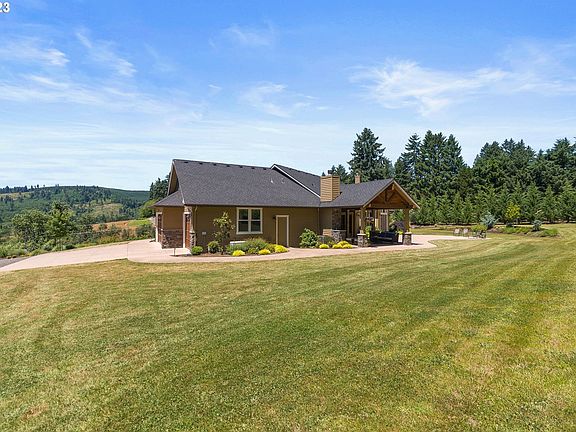 Experience luxury and resort-style living in this stunning custom home, situated on an expansive 2-acre property. Embracing the natural surroundings, this exquisite residence offers breathtaking views from every window, allowing you to immerse yourself in the beauty of the outdoors. This custom designed single-level home boasts an array of features that cater to your every need. With three bedrooms, including two with private en-suite bathrooms, and a full office, privacy and comfort are paramount. The three full bathrooms ensure ample accommodation for residents and guests alike. The chef's kitchen is equipped with top-of-the-line stainless steel appliances, perfect for culinary enthusiasts. Additional practicality is provided by the mud room and a well-appointed laundry room.Step into the gorgeous living room, adorned with a cozy fireplace, creating a warm and inviting atmosphere. Open the slider doors to the expansive custom concrete patio, where an outdoor entertainment area and wood fireplace beckon, offering an ideal space for relaxation and social gatherings. The extra-large, three-car garage, with its deep and finished interior, includes a spacious mechanics/workshop room .Outside, a captivating oasis awaits, featuring stunning views, a large deer-fenced garden, and beautifully designed landscaping. A shed provides additional storage, ensuring a clutter-free environment. Most importantly, this home offers a sense of peace and tranquility, providing an escape from the demands of daily life. With its seamless blend of nature, comfort, elegance, and functionality, this exceptional home presents an unparalleled living experience. Enjoy the harmonious fusion of luxurious amenities and the serenity of the surroundings, embracing a lifestyle that encapsulates the best of both worlds a private sanctuary and a resort-like retreat. See Features list!