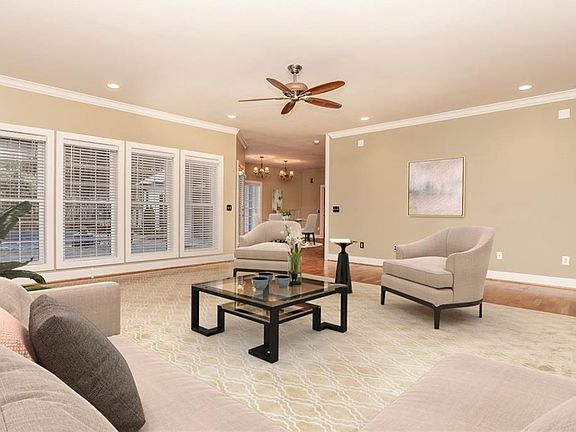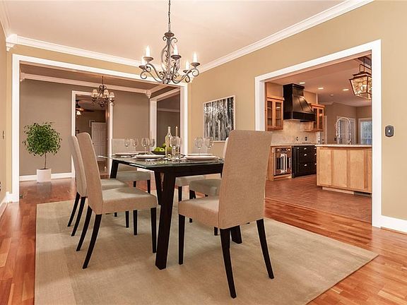 Gorgeous home in quiet neighborhood! Bright, breakfast nook has great view of pool and patio from 5 large windows. This outdoor oasis boats an inground pool plus covered patio area (including two full ceiling fans). Living room's open concept is complemented by a row of tall windows and recessed lighting, creating a bright, cozy space. Gourmet kitchen is a dream- features sleek, black vent hood, extra large island, built-in pantry and display cabinets. Built-in full bar is a fun, unique feature! Make memories with family and friends in the beautiful, open dining room lined with trim molding. Host, entertain or hang out in the downstairs space. Master bedroom's vaulted ceiling deepens the room while a set of French doors to the patio brighten the room.