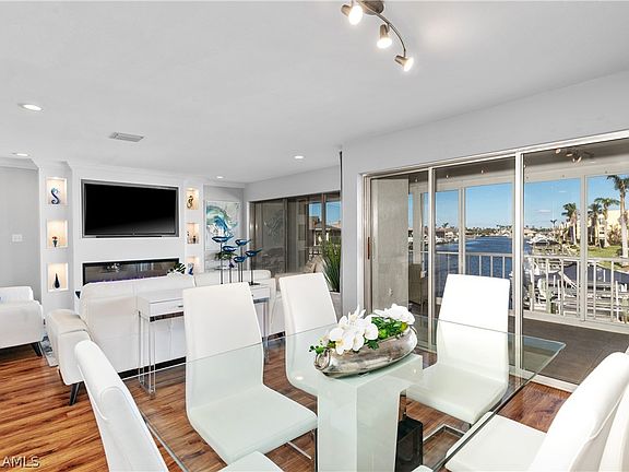 PICTURE PERFECT! Direct access condo near Jaycee Park overlooking a 200’ canal. This home has been completely remodeled with amazing custom quality details not a quick flip design. The kitchen was redesigned for unobstructed views of the living/dining area and expansive water views. Gorgeous white cabinets and Quartz countertop plus the perfect fit wine cooler! Custom entertainment center with built in shelves, TV space and remote-control fireplace. Crystal light fixtures thru out the home give that glamorous vibe. The bedrooms are spacious, and the bathrooms have been updated with custom finishes like under vanity lighting and inset towel rack in guest bath not to mention the custom tile work. Plantation shutters on the bedroom windows adds to the sophistication of this home. Every detail you can think of has been addressed here!
