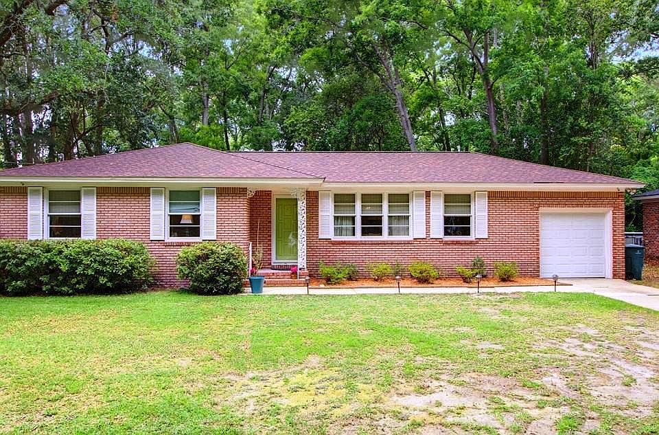 Not your Grandma's ranch! Renovated in 2015, this home has been beautifully tricked out with vaulted ceilings, open floor plan, and high end appliances. Contemporary cabinetry, granite and tile in the kitchen and both baths. Gas cooktop faces the dining area and breakfast bar. Large sliding glass doors off the dining area open to the patio. Options abound with a bonus room adjacent to the kitchen and open living room! A front picture window, mature landscaping, brick exterior and spacious front and back yard retain the charm of the mid-century construction. Roof was replaced in 2015, and HVAC less than 5 years old. The excellent location is just off the Cosgrove exit in secluded Sandhurst. Minutes to Downtown or Park Circle, and biking distance to Charlestowne Landing.