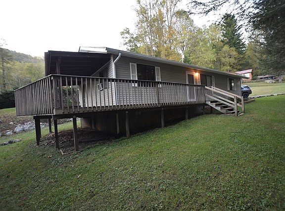 Perfect starter home located in Sylva near the Pinnacle park in a cute neighborhood on Fisher Creek. Outside feature of the home is a small yard area perfect for entertaining, carport, unfinished garage which is perfect for storage or could be finished out, and tons of deck space! Inside offers an open floor concept with cathedral ceilings, new laminate hardwood floors in the living room, and two good size bedrooms. This home is a must see and priced to sell!!!! Come see it today!