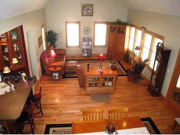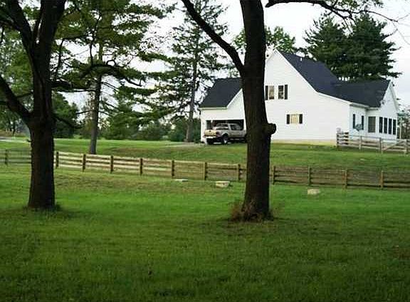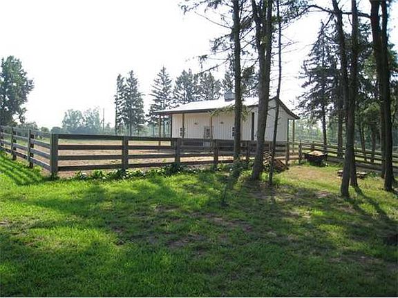 Amish built house on 11.5 acres. Farmhouse feel home only 7 years old w/open flrplan; beautiful hrdwd flrs throughout; 4 BR w/1st fl master suite; SS appliances, eating area and breakfast bar in KT; vaulted ceilings in great rm; full basement; views of woods from sunrm; nice mix of pastures, woods, stream with riding trails through the woods; 3 stall barn w/water & electric + additional storage building, several fenced pastures.