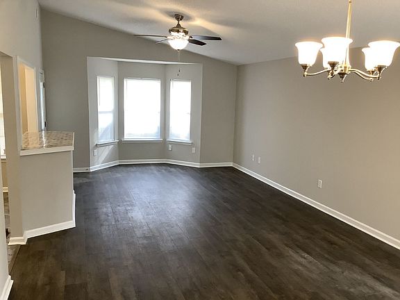 Light gray paint with white trim and LVP flooring throughout. Newer light fixtures, kitchen counter top, back splash, deep sink with gooseneck faucet, tile serving bar, blinds, hardware, refrigerator. Fenced yard. 1 car garage. Newer A/C. Conveniently located just minutes from Fort Stewart. This house is not going to last long so if you're interested you need to move fast. No pets allowed. Credit check required. AVAILABLE NOW!