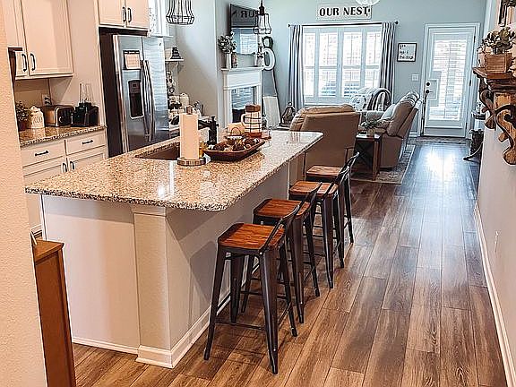 All hardwood floors (LVP) Laundry room w/ cabinets Plantation shutters Granite countertops Walk-in tile shower w/ bench Large master closet Double vanity Fenced in backyard Pergola w/ Smart TV & Bistro lights Attic space above garage