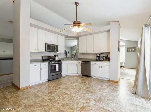 You won't want to miss this picture perfect 2 bedroom/ 2 bath End Unit! Spacious and bright with an abundance of windows and soaring ceilings, this home will make a great impression on all who enter. The expansive living and dining rooms share a cozy 3 sided gas fireplace and offer a great place to relax and entertain. The well appointed kitchen with 42" white cabinetry, sleek stainless slate appliances, walk in pantry, pass through to living room, and sliding glass door that leads to the oversized deck with green space views. 2 ample sized bedrooms including 13x20 master suite with vaulted ceilings, WI closet, and private bath. Attached 2 car garage with direct access, full in unit laundry and plenty of storage add to the appeal. Many recent updates and upgrades including painting, carpet, nest thermostat and more! New roof 2016. All this in an incredible location in the well rated District 308 schools, close to all conveniences and centrally located making it a short distance to Naperville and Oswego. Make your appointment today!