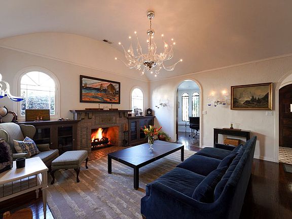 This property features 6 bedrooms and 5 bathrooms, along with a fully converted cottage suite that is distinct from the main residence. The cottage suite offers versatile usage options, suitable for a mother-in-law apartment or an art studio. Classic original 1920's character Mediterranean home in prime Los Feliz will impress; a contemporary palette combined with traditional motif make for comfortable, transitional living. You will love the modern, earthy, skim coat exterior as you enter the oversize, original front door and find the foyer tiled in a Walker Zanger transitional themed marble, a trend you will find throughout the property. Subtle yet impressive Murano fixtures command the high, arched ceiling in the living area, with a cozy original Batchelder gas fireplace, originally built in shelving and original 3/4 inch hardwood floors.