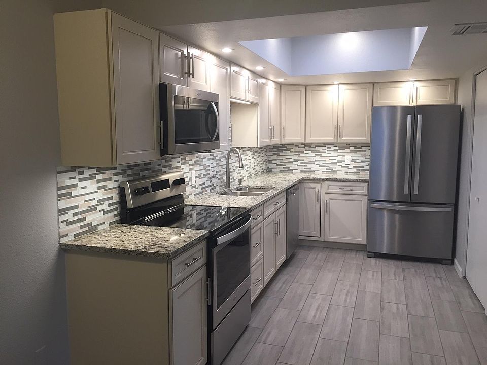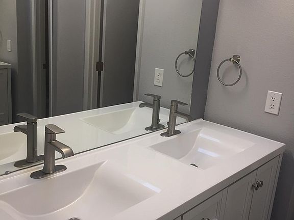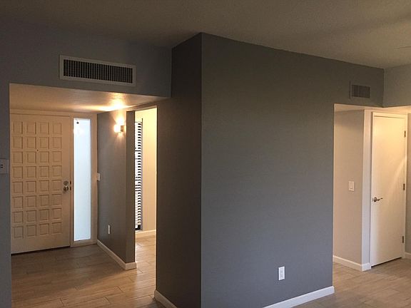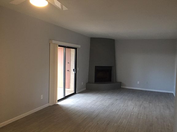 This is a completely remodeled unit - from floor to ceiling. New kitchen with upgraded cabinets, granite counters and stainless steel appliances. Tile throughout. Beehive fireplace in living room. Split floor plan with dual master bedroom suites. Lot of storage. Private rear yard with large covered patio. Front two car carport steps away from front door. Small complex with pool. Convenient central location near shopping and bus. Owner pays for trash, water and sewer. Tenant pays for electric.
