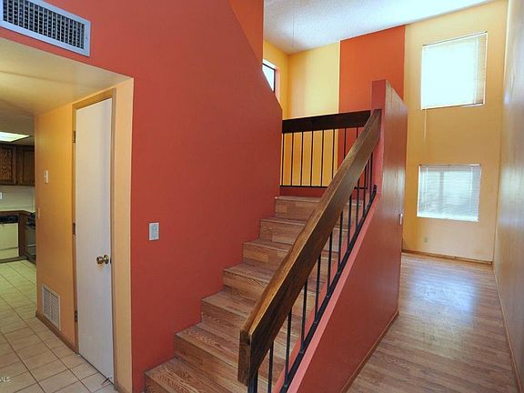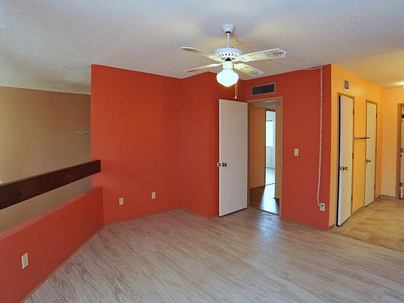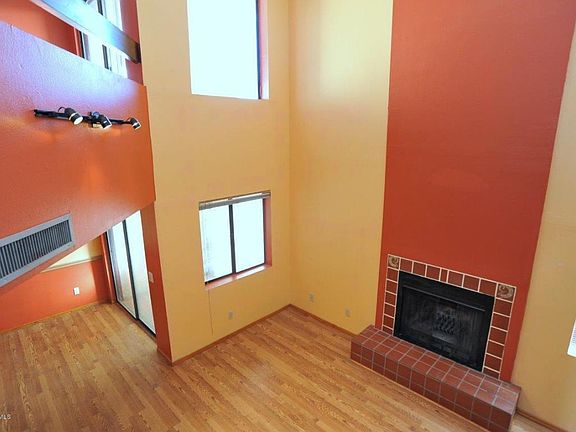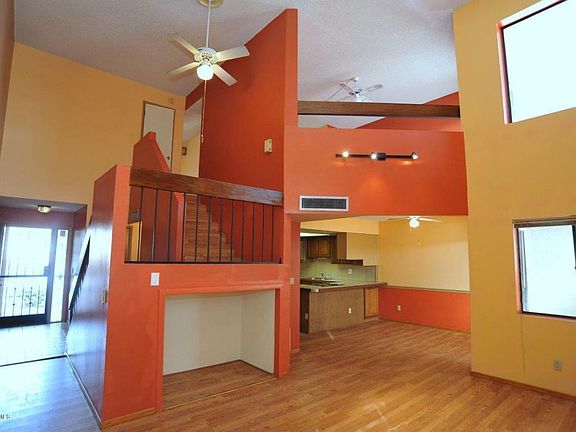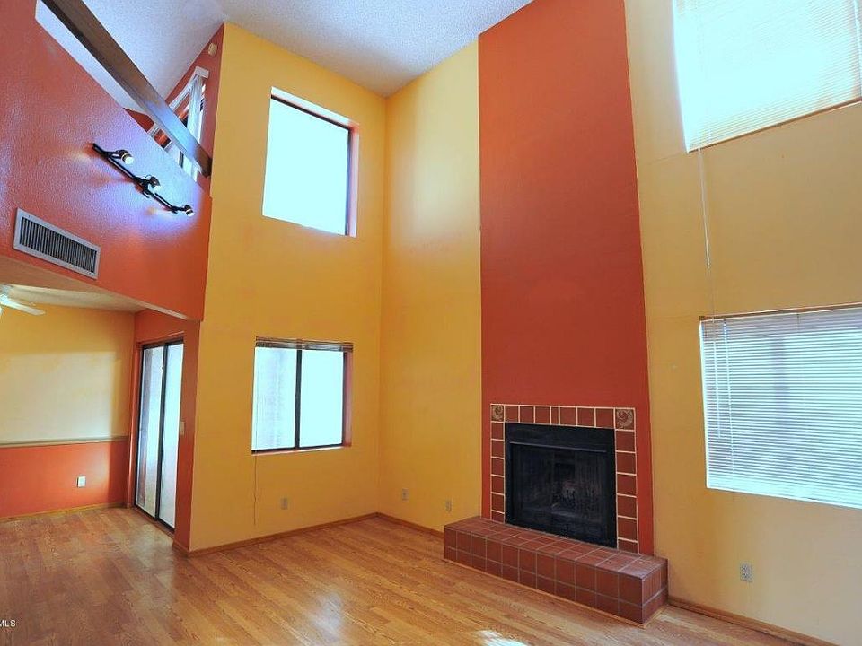 Open and bright, centrally located condo with soaring ceilings, loftlike master suite, fireplace and plenty of storage. Upstairs master balcony, small private patio. Close to Trader Joe's, Crossroads shopping center and the Roadhouse Cinemas! Evaporative cooler conveys as-is.