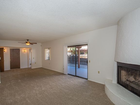 Lovely two bedroom two bath home with brand new carpet. It has a large great room with ceiling fans and an attraction corner fireplace. Outside is a nice size covered patio and a small easy care yard. The location is wonderful, central and near shopping and other amenities. The home owners association includes roof (replaced in 2017), all water, garbage, building exterior, common area, pool and spa maintenance, hazard insurance, and street maintenance. For peaceful easy living, come and see this home.