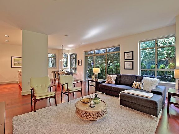 The Guesthouse at The Addison, on a tree-lined street between NW 23rd & the Pearl district. A walker's paradise. Sophisticated living in a ground level unit. Large fireplace, huge windows, 2 spacious bedrooms & 2 baths. South-facing 30x10 terrace and courtyard. Wonderful for entertaining! Feels like a chic city house yet gated & secure! 1 year lease. Water, Sewer and Garbage included. One Covered, Secure Parking Space, One Storage Room measuring approx 8 X 10.