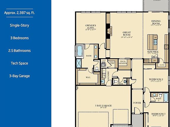 - Attached garage spaces: 3