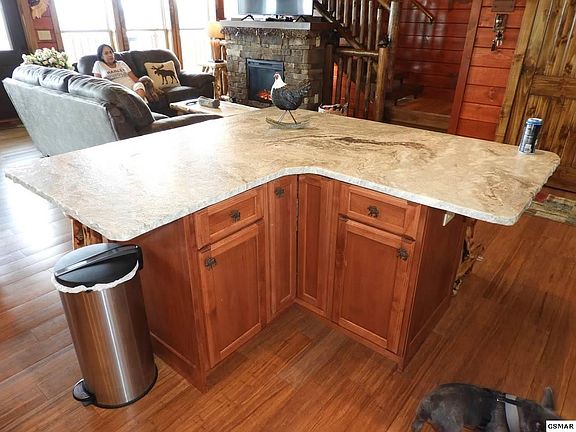 Beautiful 5 bedroom/4.5 bath cabin featuring top amenities and stunning, awesome views of the Smoky Mountains. This incredible 3 story cabin provides accommodations for 16 guests. The kitchen area features granite counter tops, stainless appliances. Living area has a electric fireplace with custom furniture. The upper level has 2 bedrooms/2 bath and a theater area. The lower level has three bedrooms/ 2 bathrooms. The game room has a pool table . Amazing views from each deck.