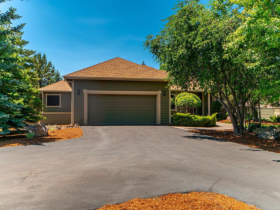 Positioned on the 14th tee of The Resort Golf Course in the gated community of Eagle Crest, this private, single-level home offers a quiet setting for resort living. Featuring an open floor plan with a gas fireplace and central heating and cooling to keep you comfortable. The spacious kitchen has alder cabinets, granite countertops and backsplash, an island with breakfast bar and dining nook. The large primary bedroom features an ensuite with spa tub and double vanity, walk-in closet, and a private office. Outside, the concrete paver patio provides plenty of space for quality outdoor living. Delight in the established landscaping, especially the cherry blossoms in the Spring! Enjoy all the amenities Eagle Crest has to offer. 3 golf courses, dining, multiple swimming pools, an indoor pool, tennis and basketball courts, along with miles of walking/biking trails. The HOA dues cover water, sewer, snow removal, access to resort amenities, and common area maintenance.