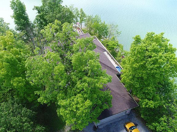 Custom built basement rancher with water on 3 sides just like owing you own little island.Private boat dock and floating dock. Main house has 3 bedrooms plus an office down., 2 car garage. and 3.5 Baths. ALSO a Detached Studio/ Office with approx. 900 sq ft 2 baths a 10x10 walk in closet. 3 car garage 1 side for pontoon. has hookup for camper . Custom cabinets in kitchen with 4 Lazy Susans.. Oversized Utility room 10x10. Very well insulated! R-21 attic, R-49 under floor. R-30, all in interior walls. R-15, 2000sq ft open decks,covered porch 300sq ft. Surround sound out side on decks. Camper waste dump and concrete boat ramp. Spectacular . Panoramic Views Built for Family Entertainment!
