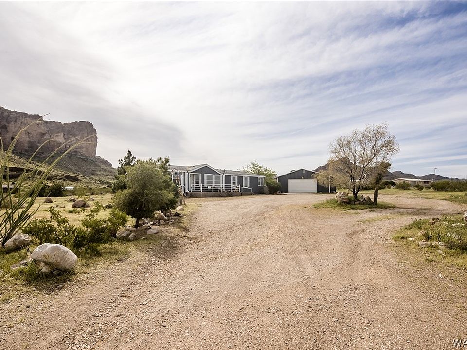 Tranquility at its finest. This gorgeous home on approximately 2.35 acres, fully fenced, gated and nestled against the Black Mountains in Golden Valley AZ. This prime location gives you quick and easy access to Kingman, Laughlin and Bullhead City and is within 5 miles of the Golden Valley Fire Department. Nearing BLM land, bring your toys, hiking boots or mountain bikes and truly enjoy what this place has to offer. As if the scenery wasn't enough, this home also is equipped with these amazing features: 3 Bed, 2 Bath, spacious living room with tall ceilings, huge on-suite Master Bedroom with bonus area perfect for a secure home office, exercise equipment area or convert into a master closet. Large Chef Styled Kitchen complete with Granite Countertops and beautiful backsplash, Utility room, and a 20x30 enclosed AZ room perfect for a game room, or maybe even a greenhouse. This home is served by a private well, the well is in an enclosed building with a pressure tank and 1000 gallon holding tank, Detached Garage is a spacious 30x30 detached welded steel building with an 8' tall door. Home is served with a leased propane Tank from Graves. This home is well worth the viewing as you don't want to leave once you are there.