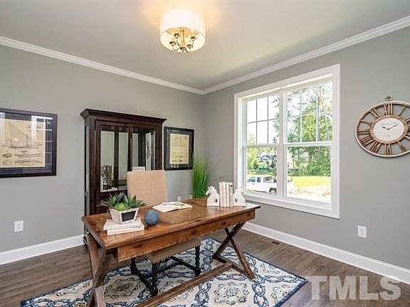Ready in January! This "Canterbury" green-certified, ranch-style plan in Wendell Falls is by locally-owned Homes By Dickerson. 1st floor features private study, owner's suite and two guest-bedrooms. Open concept kitchen, dining and family room with screened porch. Tankless water, sealed crawl & many other custom finishes throughout! Resort style living with pool, parks, trails & more.