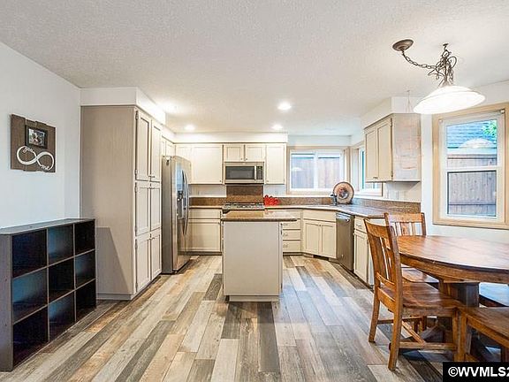 Accepted Offer with Contingencies. Updated 4-bed, 2-bath home has fresh paint inside and out, reclaimed wood plank flooring, energy efficient, dual pane windows and new GE kitchen appliances. The family room with gas fireplace opens to the kitchen with work island and breakfast nook. Down the hall is the master with 2 closets and ensuite bath with tiled, walk-in shower and dual vanities. The backyard is fenced and has in-ground sprinklers, a cedar deck and RV pad. Kalapuya Elementary, Straub Middle and West Salem High schools are close by.