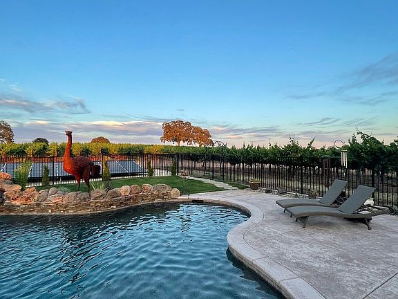 Beautiful home with amazing views of the vineyard. 3535 sq ft home with spiral staircase, living room has vaulted ceilings, 4 bedrooms upstairs, office downstairs, stone kitchen counters, rooms have carpets, laundry room with sink & cabinets, half bath access to backyard to the pool area, patio for bbq. Beautiful 2 year pool with solar heating. Home has fully paid solar panels, in demand water heater. Home is surrounded by views from all sides.