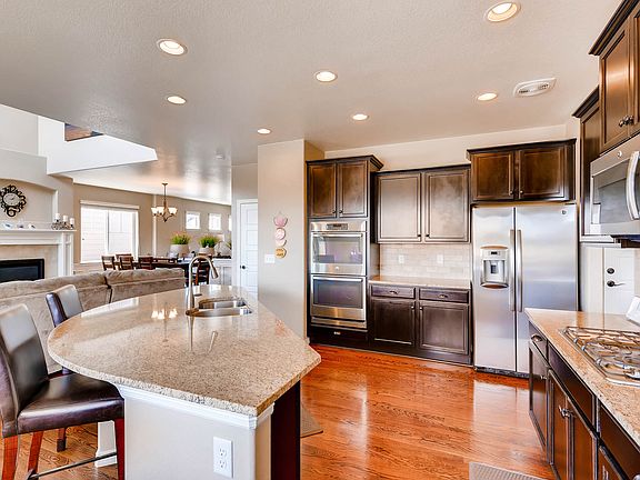 Check out this phenomenally priced home In Village on the Green! Open Floorplan with a Great Room living style, complete with Formal Living and Dining Areas. Stunning Wood Floors on throughout most of the Main level, Gourmet Kitchen including large slab granite island with eating area, Stainless Steel Appliances, Double Ovens, Gas Range Cooktop, Loads of Counterspace and 42" Espresso Cabinetry, Built-In Desk area or "Command Center" behind kitchen, Large Master Ensuite with Enormous Walk-in Closet and Gorgeous Five-Piece Bath. The size of the secondary bedrooms is outstanding! Two Rough-In locations for baths in the large unfinished basement, radon mitigation system, Humidifier and large 50 Gal H2O Heater, and the list keeps on going... In the coveted Douglas County School District. Call today for more information!