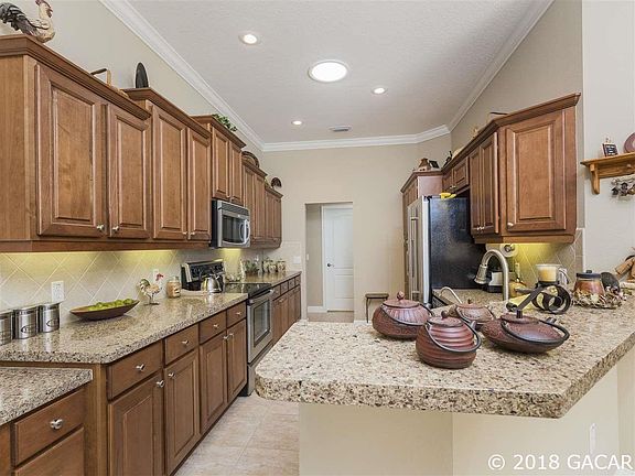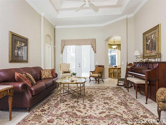 Every upgrade imaginable is available in this custom built, stylish pool home located on a cul-de-sac in beautiful Fox Trace. This home shows like brand new! Eat in kitchen w/gorgeous Silestone counters, upgraded SS appliances w/plenty of maple wood cabinetry, pantry and breakfast nook that features a large aquarium style window overlooking the pool & backyard. Beautiful crown molding embellishes the soaring trey ceilings of the great room and continues framing the 10 foot ceilings throughout the rest of the home. The great room and dining area features 3 custom designed archways that bring a classic elegance to this large common area of the home. The spacious 3 bd 2 1/2 bath floor plan is well designed with a 2-way split and features a beautiful screen enclosed saltwater pool with summer kitchen and over-sized half bath w/closet for storage. This home has wonderful quality ceramic tile throughout and offers premium plush carpet in each bedroom. Master bedroom features large walk-in closets with organization systems (also in both secondary bedrooms) spacious bath with garden tub and a Roman style walk-in shower. Comfy den with gas fireplace w/wooden mantle has French doors to pool area, spacious screened garage has ample storage.