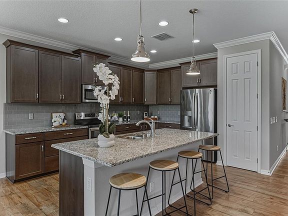 **DISCOVER A TRULY EXCEPTIONAL, PRIVATE, AND RARELY AVAILABLE LOT WITH LAKE AND CONSERVATION VIEWS IN THE HEART OF LUTZ** One of the most pristine, coveted home sites in the community, now reimagined with elegant staging! **2019 M/I HOME** The popular Corina II "B" floorplan. This single-story residence sits on a breathtaking, ultra-private setting backing directly to Camp Lake with peaceful conservation beyond, offering unobstructed views and a level of serenity that’s nearly impossible to find. **LOW HOA** **NOT IN A FLOOD ZONE** Featuring 4 beds, 3 *full* baths, and a **3 CAR GARAGE** Pride of ownership and curb appeal greet you with a paver driveway, fresh mulch, neatly trimmed landscaping, and a freshly painted neutral exterior color scheme sure to impress! Step inside to an open, light-filled layout featuring 9'4" ceilings, laminate flooring, crown molding, an abundance of lighting, and an expansive main living area framed by two large sliding glass doors that showcase the stunning natural backdrop. The beautifully appointed kitchen includes stainless steel appliances, 42" upper cabinets with crown molding, glass tile backsplash, double oven range, undermount sink, center island with bar seating overlooking the living space and lake view, pantry, lazy Susan, and pull-outs in all lower cabinets. The spacious primary suite at the very back of the home offers incredible privacy, comfort and lake views! Complete with a massive walk-in closet and a well-designed bathroom featuring a soaking tub, separate shower, dual vanities, and private water closet. Three additional bedrooms and two full guest baths provide flexibility for family, guests, or a home office. Enjoy outdoor living on the **47-FOOT WIDE** covered lanai, offering generous shade and room to expand with a future pool and screen enclosure—made even more impressive by the unmatched view. The 3-car garage includes durable epoxy flooring. **BRAND NEW EXTERIOR PAINT** was completed in November 2025, and the interior has been professionally touched up for a crisp, move-in-ready finish. **ENJOY UPGRADES TO INCLUDE rain gutters, connection on the lanai for a spa that could also power a generator, hurricane covers for all windows and doors, 8 foot interior doors, a utility sink in the garage, and upgraded light fixtures.** Zoned for highly rated schools! Located just minutes from the Tampa Premium Outlets, a mile from SR-54’s extensive shopping and dining, approximately 5-10 minutes to the Veterans Expressway, within a 30-minute drive to Tampa International Airport and Downtown Tampa, and within an hour to beautiful beaches like Clearwater Beach and Honeymoon Island! The community features a nature path behind the home, swimming pool, playground, tennis court, and basketball court. This is an extraordinary opportunity to own a home on one of the best and most private lots in Lutz—a rare find you won’t want to miss.